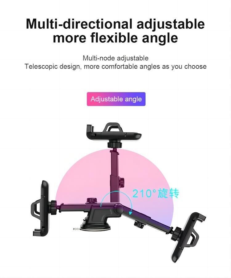 - [360 Degrees Rotation Cell Phone Car Mount] The 360 degrees ball joint and the adjustable telescopic arm make you able to adjust your phone to any angles and any places. Find a best view for your trip. You can use this mobile phone holder for car vertically or horizontally either, extremely flexible. That is convenient to navigate, pickup phone calls.